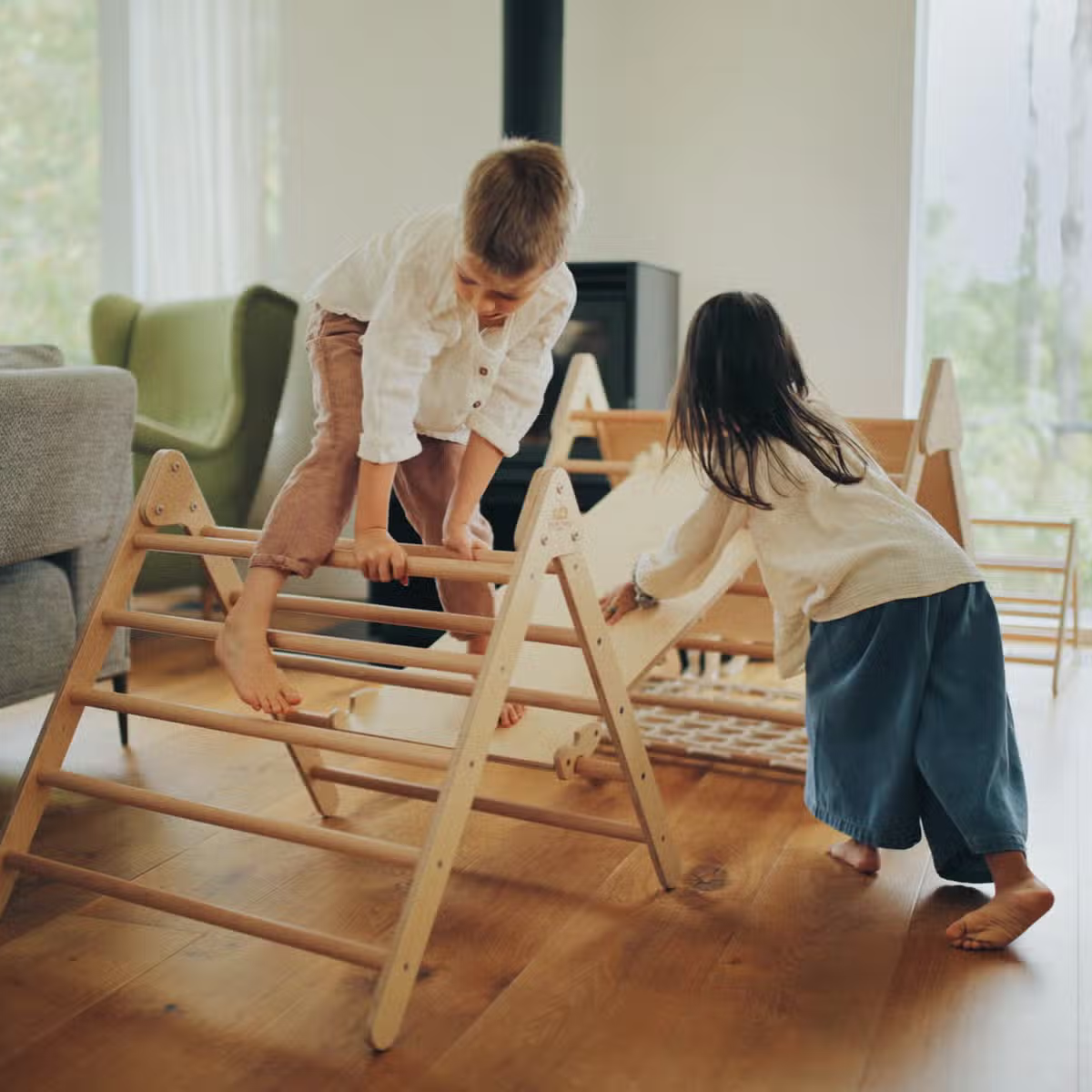 The MEDIUM Pikler Triple Climber Triangle features 2 sides with climbing dowels and is collapsible for easy storing. Crafted using responsibly-sourced birch plywood and beech wood, it's a wonderful sustainable option for mobile little ones exploring their adventurous side. Through physical developmental play with the Pikler system, children gain muscular and cardiovascular strength, build self-esteem, improve gross motor skills and explore their imagination simultaneously.