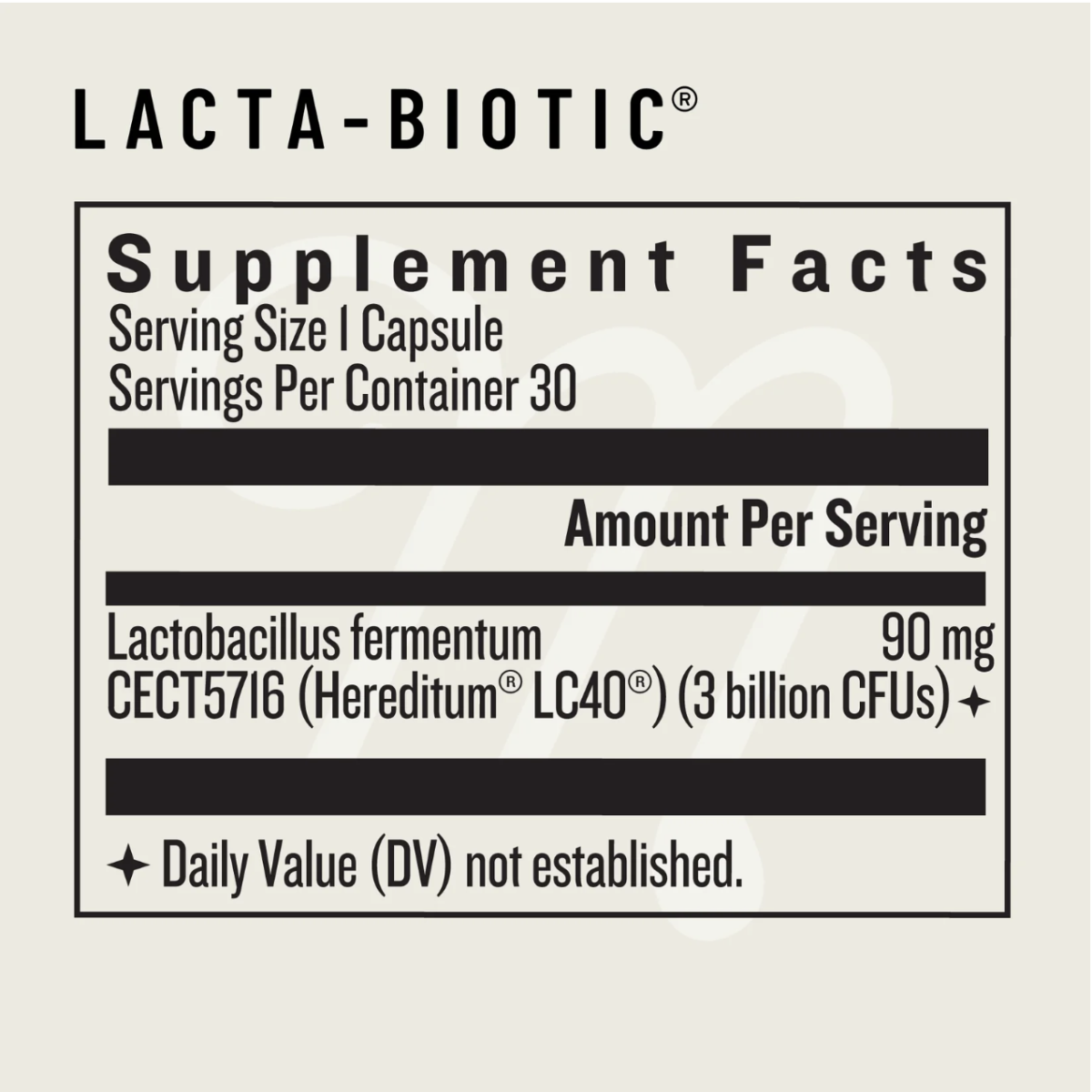 Support your intestinal flora and ease breast discomfort with Lacta-Biotic Probiotic, which contains the Lactobacillus fermentum CECT5716 probiotic strain - the same one found in human breast milk.