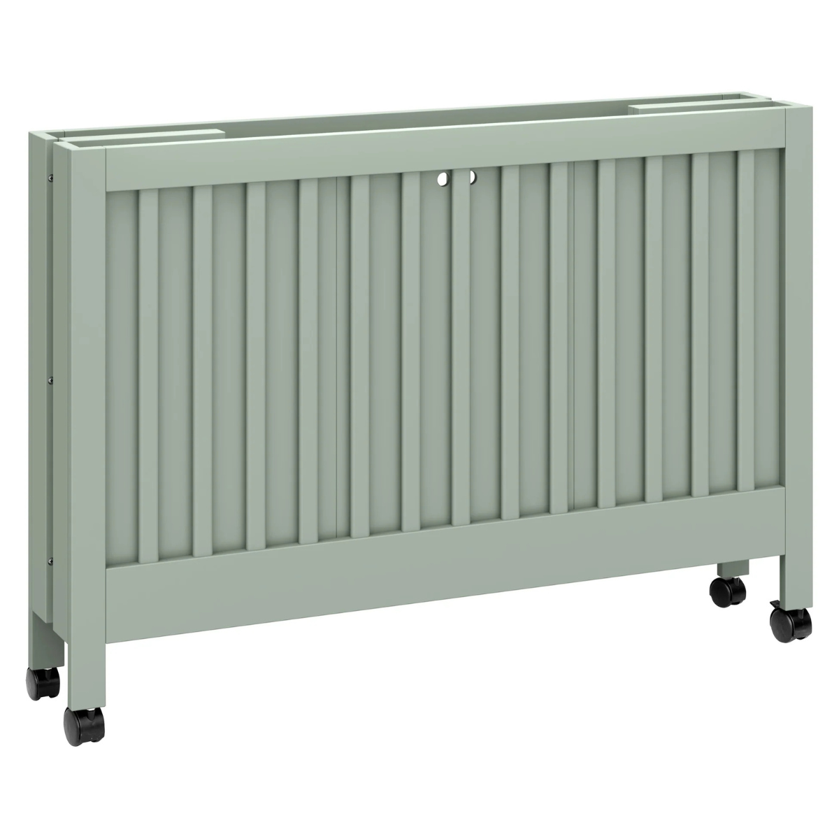 The Maki full-size crib is clean with modern geometric lines and foldable framethat makes this crib portable and easy to store. Designed for movement with removable wheels and lightweight timber construction, making it perfect for secondary living spaces.