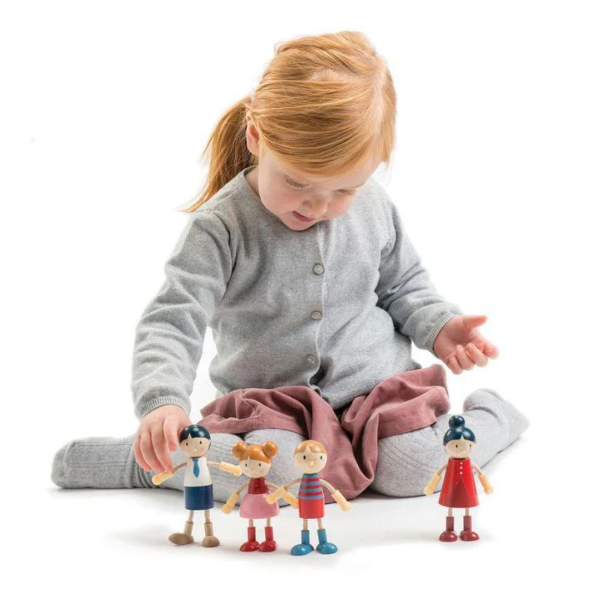 Tender Leaf doll family includes mum, dad, little boy and little girl. The dolls are made of solid wood with flexible arms and legs to make any poses you want! They can be played on their own as well as the perfect companion to our dolls house range.