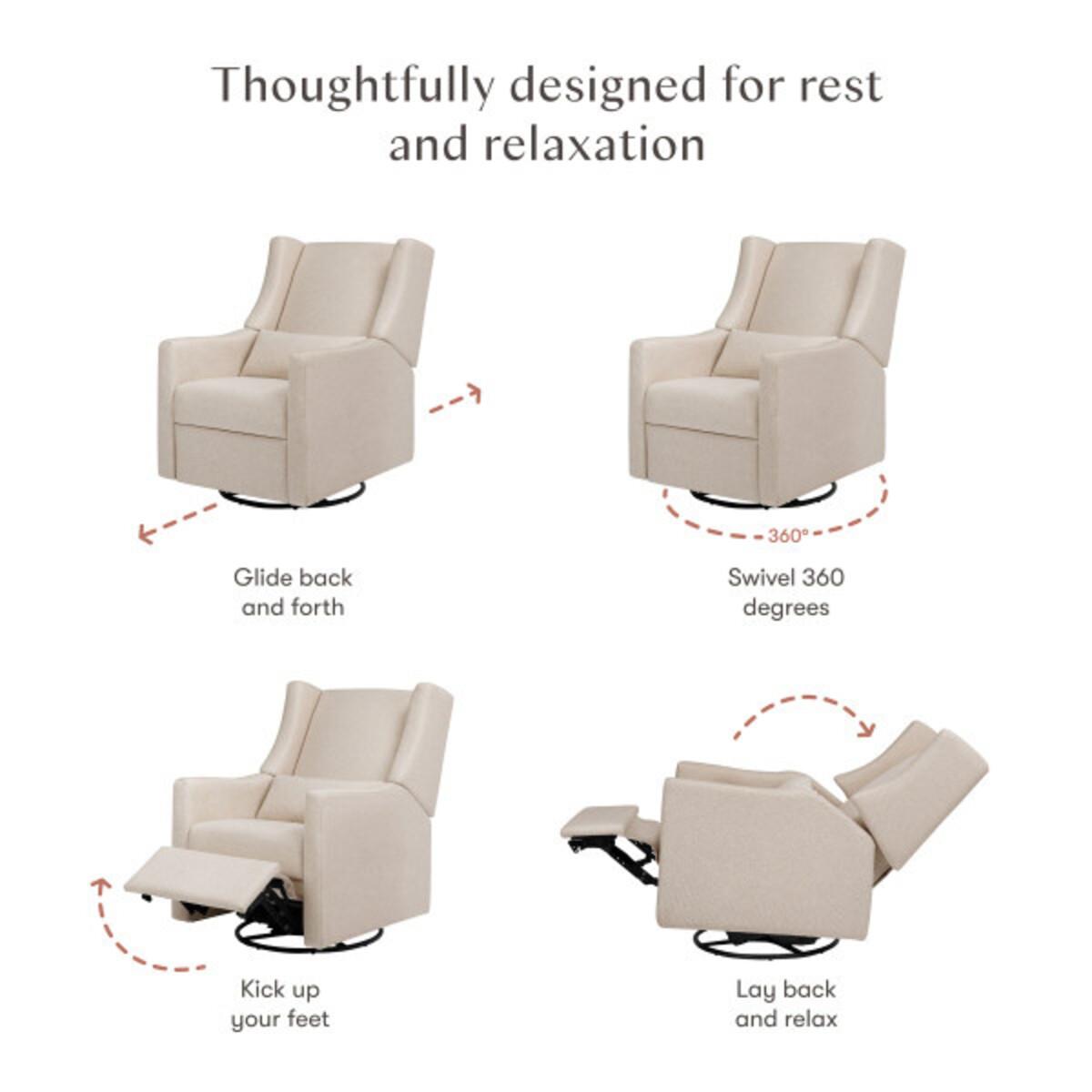 EASY RECLINE, SWIVEL & GLIDE: Our hidden reclining mechanism maintains a clean design while offering optimal comfort so you can get cozy. Whether you are feeding or rocking baby to sleep, Kiwi's base allows for a smooth and gentle 360 degree swivel motion and back and forth glide.