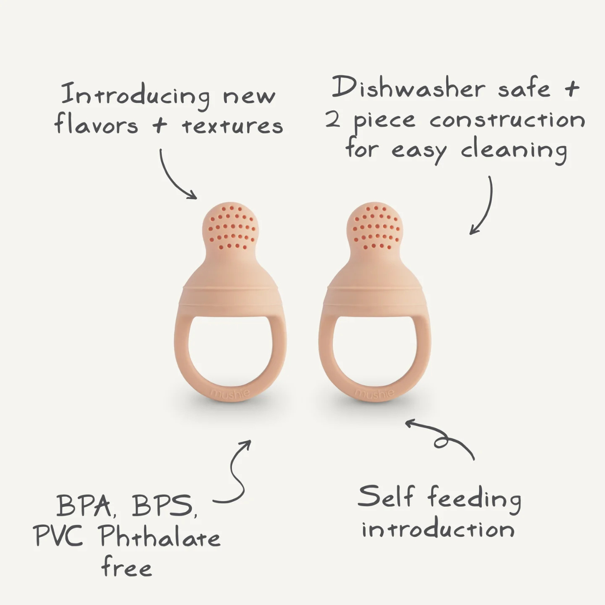 Made from food grade silicone and featuring an easy-to-clean, two-piece design, this feeder will quickly become a favorite for at-home meals or on-the-go snacks.
