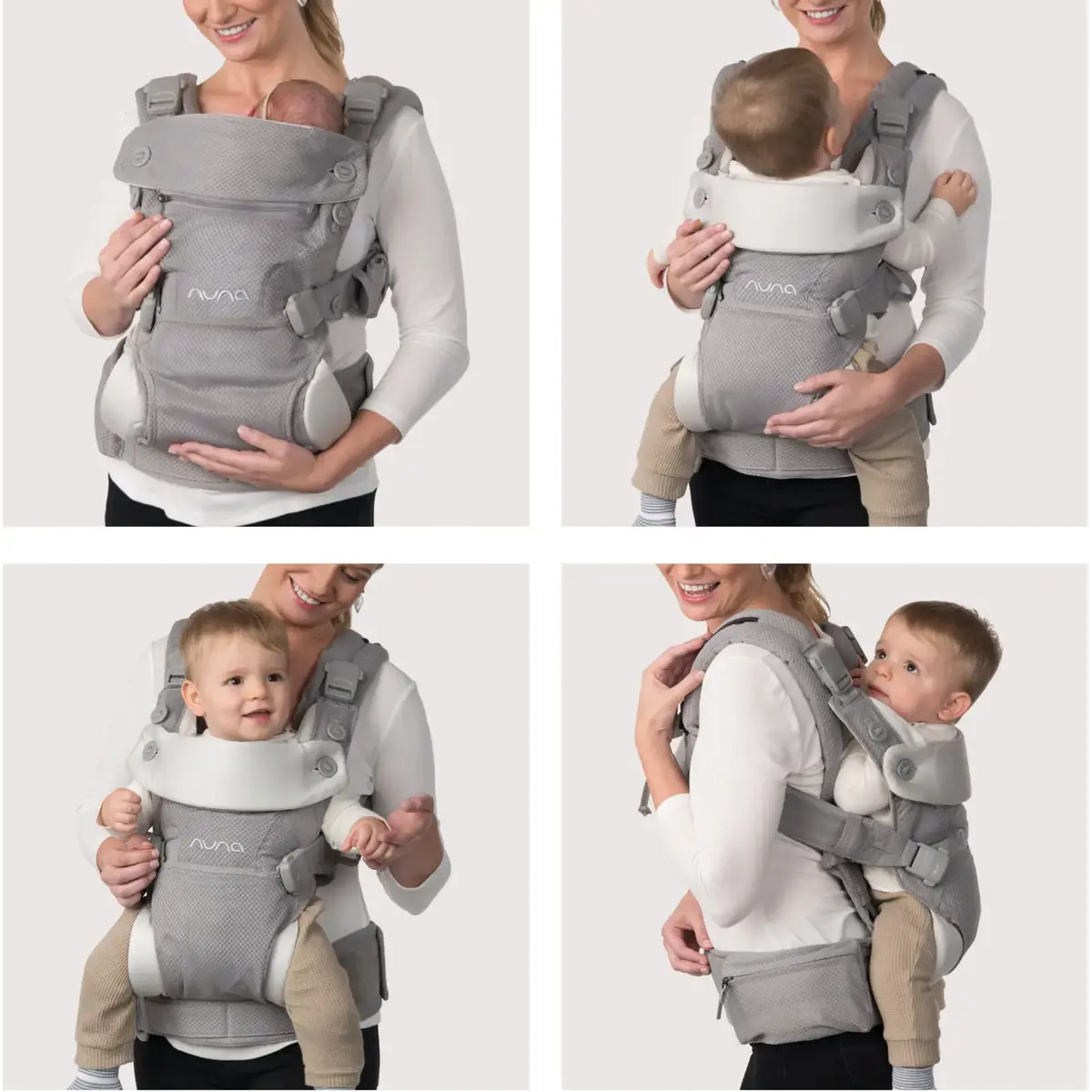 Four carry positions provide optimal support as your child grows—for healthy body positioning necessary in spine and hip development.
