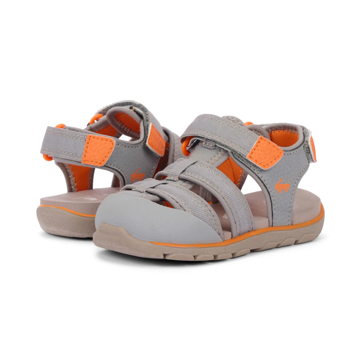 - Cloud gray PU nubuck, polyester webbing, and binding upper and rubberized toe cap to protect little toes.