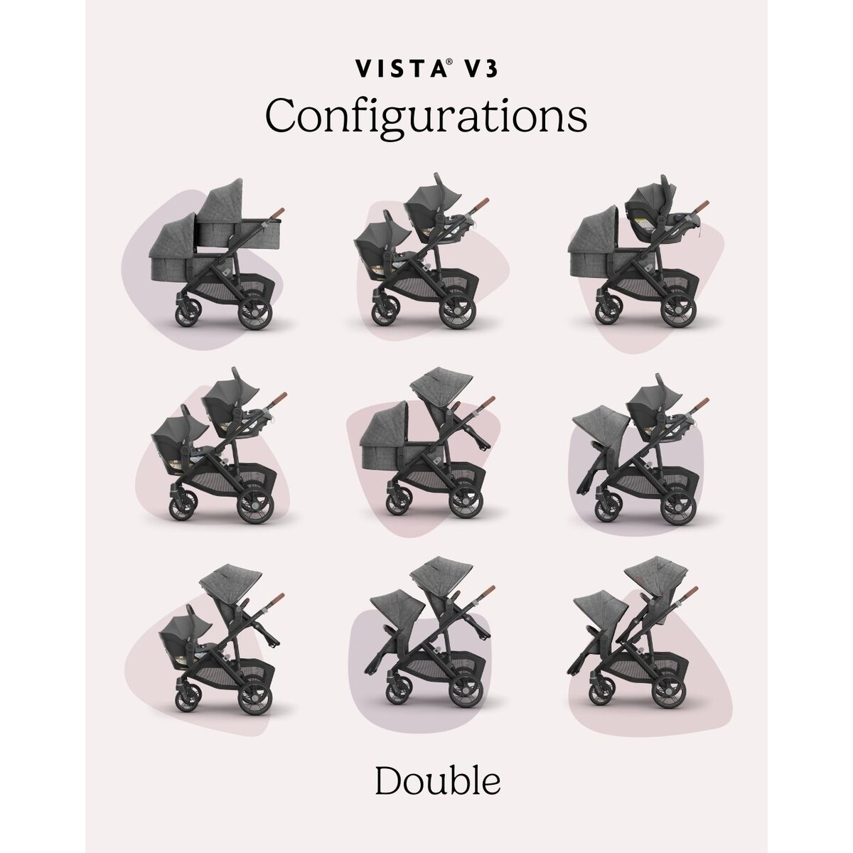 Our Vista stroller is intuitively designed to “grow” with your family! It starts as a single stroller but can easily transform to accommodate up to three children with added accessories and adapters — becoming the ultimate in portability and convenience!