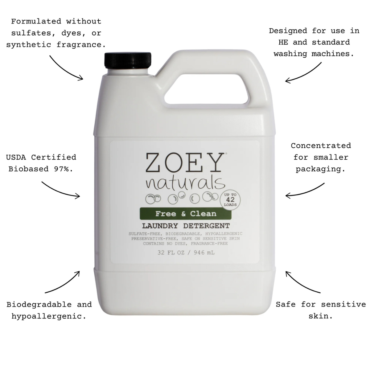 Biodegradable and hypoallergenic, it's a conscientious choice for both your family and the planet. Free from preservatives, dyes, and fragrances, it's specifically formulated for sensitive skin, delivering a gentle and effective cleanse. With Zoey Naturals, embrace a laundry detergent that not only cleans but also cares for your loved ones and the environment.